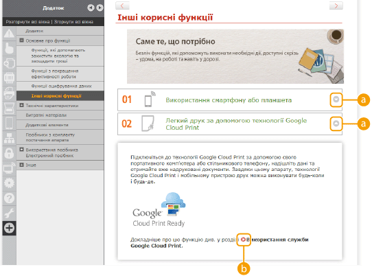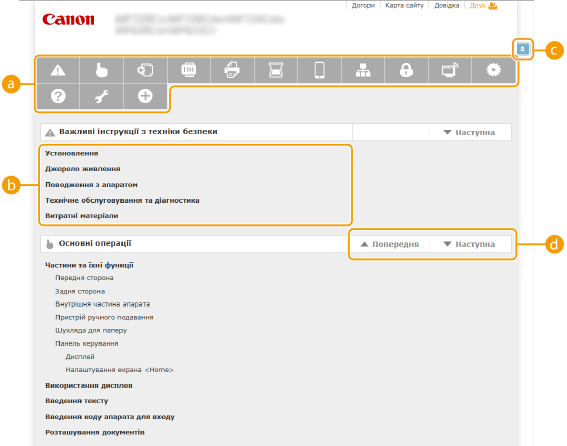 Клацніть піктограму розділу, щоб перейти на початок відповідного розділу.