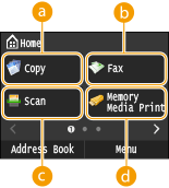 Кнопки діїЦі кнопки відображають «Пріоритетні параметри», зареєстровані для функцій копіювання, факсу та сканування. Додавання кнопок на екран <Home>