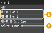 , можна збільшити або зменшити коефіцієнт масштабування, але краї документа, якщо його збільшити, можуть бути нескопійованими.Параметр <2 on 1>/<4 on 1> недоступний, коли активовано функцію <Erase Frame> або <ID Card Copy>.