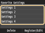 Щоб видалити зареєстрований параметр, послідовно торкніться елементів <Copy>  <Favorite Settings>  <Delete>  Виберіть елемент «Параметри»  <Yes>  <Yes>.