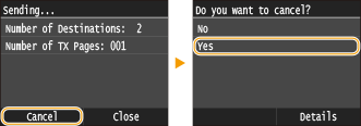 На екрані, що відображається під час передавання факсів, торкніться кнопки <Cancel>