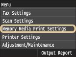 Усі параметри друку для носія пам’яті супроводжуються коротким описом. Параметри за промовчанням мають позначку кинджала (