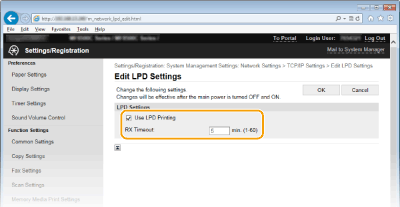 Установіть прапорець для друку через RAW. Якщо друк RAW не використовується, зніміть прапорець. [RX Timeout]