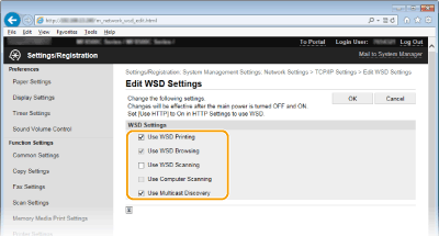 Установіть прапорець для друку через WSD. Якщо друк WSD не використовується, зніміть прапорець. [Use WSD Browsing]