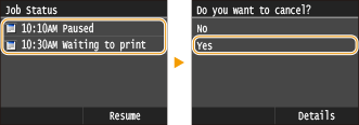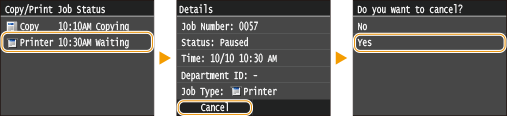 Скасування за допомогою Remote UI (Інтерфейс віддаленого користувача)Скасувати друк можна зі сторінки [Job Status] у Remote UI (Інтерфейсі віддаленого користувача). Див. розділ Перевірка поточного стану документів на друк