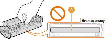 Поводження з картриджем із тонеромТримайте картридж із тонером за ручку та не торкайтеся поверхні барабана (
