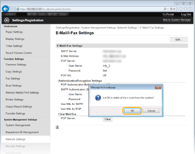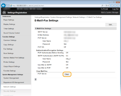 Виберіть елемент [Clear] у пункті [Clear Mail Box].