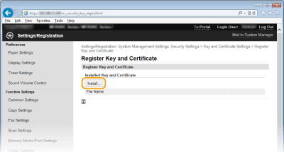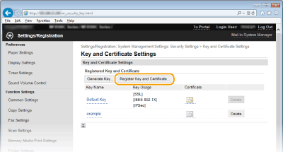Виберіть елемент [Register Key and Certificate] або [Register CA Certificate].