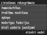 Nospiediet, lai atgrieztos iepriekšējā ekrānā. Ja, norādot iestatījumus, nospiežat šo taustiņu, iestatījumi netiek lietoti un displejā tiek parādīts iepriekšējais ekrāns.