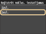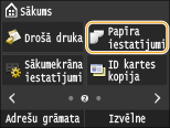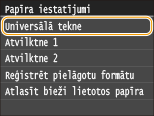 Kad ir reģistrēts noklusējuma papīra iestatījums, ievietojot papīru, netiek rādīts papīra iestatījumu ekrāns un vienmēr tiek lietots viens un tas pats iestatījums. Ja ievietosit cita formāta vai veida papīru, bet nemainīsit papīra iestatījumus, iekārta, iespējams, nedrukās pareizi. Lai novērstu šo problēmu, izslēdziet noklusējuma iestatījumu, 3. darbībā izvēloties <Izsl.>, un pēc tam ievietojiet papīru.