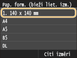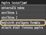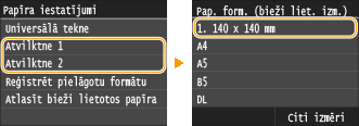 Ja izvēlaties papīra atvilktnei paredzētu papīra formātu