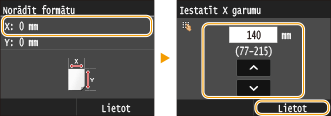 Ievadiet malas <Y> garumu un pieskarieties <Lietot>.