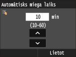 . Varat arī izmantot automātiskā miega laika iestatījumu, lai iekārtā automātiski aktivizētu miega režīmu, ja tā ir dīkstāvē noteiktu laika periodu.