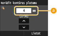 vai izmantojiet cipartaustiņus, lai ievadītu rāmja platumu (1–50 mm), un pieskarieties <Lietot>.