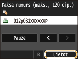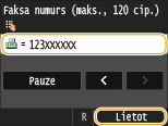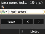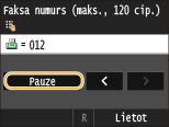 Pieskarieties <Pauze>, lai pēc nepieciešamības faksa numura beigās ievietotu pauzi.