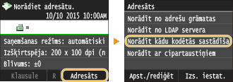 Adrešu grāmatā ietvertajām adresēm ir piešķirti trīsciparu numuri (kodētās numuru sastādīšanas numuri). Adresi varat norādīt, vienkārši ievadot tās kodētās numuru sastādīšanas numuru.
