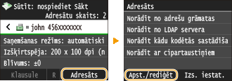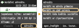 Ja birojā ir instalēts LDAP serveris, varat izmantot serverī reģistrētus adresātus. Lai norādītu adresātus, piekļūstiet LDAP serverim, izmantojot iekārtu, un pēc tam meklējiet adresātu.