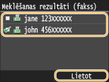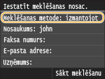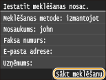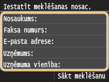 Lai meklētu adresātus, varat izmantot tādus kritērijus kā vārds, faksa numurs, e-pasta adrese, uzņēmuma nosaukums un organizācijas nodaļas nosaukums. Vienlaikus var norādīt vairākus meklēšanas kritērijus.