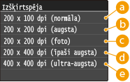 Varat izvēlēties savam dokumenta veidam piemērotu izšķirtspēju. Jo lielāka ir izšķirtspēja, jo skaidrāki ir attēli, taču to sūtīšanai nepieciešams vairāk laika.