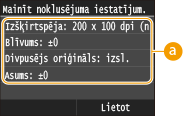 Noklusējuma iestatījumi ir tie iestatījumi, kas tiek parādīti ikreiz, kad ieslēdzat iekārtu vai nospiežat