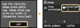 Ja izvēlaties <Jā>, tiek parādīts ziņojums. Apskatiet ziņojumu un tad pieskarieties <Labi>. Reģistrēto iestatījumu kombinācija tiek pievienota ekrānam <Sākums> kā īsinājumpoga.