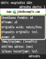 Ja vēlaties reģistrēt iestatījumu kombināciju, ko izmantot pēc nepieciešamības: Bieži izmantotu skenēšanas iestatījumu reģistrēšana (e-pasts/I-Fax/koplietojama mape/FTP serveris)