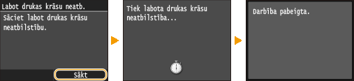 Šī pielāgošana nav iespējama, ja ekrānā tiek atlasīts <Turpināt tikai melnbalto drukāšanu>, un tiek rādīts ziņojums <Tonera kas. darbmūža beigas>.