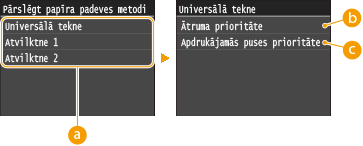 Zvaigznītes (*)Iestatījumi, kas atzīmēti ar "*1", ir pieejami tikai tad, ja ir pievienota papildus papīra atvilktne (2. atvilktne).