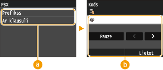Ievadiet ārējās līnijas piekļuves numuru, ja izvēlējāties <Prefikss>
