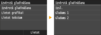 Iestatījumus <Noklusējuma papīra formāts> un <Noklusējuma papīra veids> nevar norādīt atsevišķi. Norādiet papīra formātu ekrānā <Noklusējuma papīra formāts> un pēc tam norādiet papīra veidu ekrānā <Noklusējuma papīra veids>.