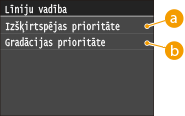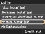 Iestatījumu prioritāteLietojumprogrammā vai printera draiverī norādītie iestatījumi pārrakstīs iekārtā norādītos iestatījumus. Šajā sadaļā aprakstītie iestatījumi ir īpaši noderīgi, ja drukāšana tiek veikta, izmantojot tādu operētājsistēmu kā UNIX, kurā nav pieejami iekārtas printera draiveri.