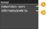 Ja iestatījumam <Pustoņi> (Pustoņi) ir iespējota opcija<Stohastiskais rastrs>, režīmi <Režīms 1>, <Režīms 2>, <Režīms 3> un <Režīms 4> piemēro izdrukām tādu pašu efektu kā režīms <Režīms 6>.