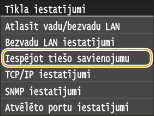 Iestatot <Iespējot tiešo savienojumu> uz <Iesl.>, novērš vadu LAN vai jebkura bezvadu LAN izmantošanu, izņemot tiešo savienojumu.