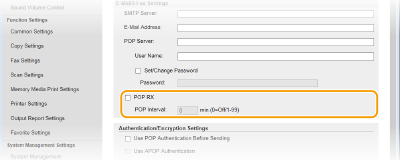 Iestatījumam [POP Interval] norādiet vērtību [0]. Kad ir iestatīta vērtība [0], I-Fax dokumentus varat saņemt manuāli.