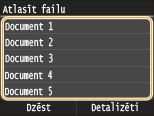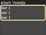 Ja atmiņā ir saglabāti divu vai vairāk lietotāju aizsargātie dokumenti, pirms ekrāna <Atlasīt failu> parādīšanas tiek parādīts ekrāns <Atlasīt lietotāju>. Atlasiet savu lietotājvārdu.