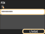Ievadiet PIN, izmantojot ciparu taustiņus, un pēc tam pieskarieties <Lietot>.