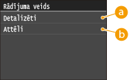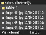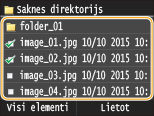 Varat mainīt rādīšanas metodi no <Detalizēti> (failu nosaukumiem un modificēšanas datumiem) uz <Attēli> (priekšskatījumiem). Priekšskatot attēlus, varat pārbaudīt faila saturu, pirms izvēlaties to drukāt.