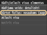 Ja izvēlaties iestatījumu <Datums/laiks (augoši)> vai <Datums/laiks (dilstoši)>, faili tiek kārtoti pēc to modificēšanas datuma un laika.