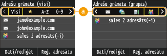 Adrešu grāmatā varat norādīt adresātu, izvēloties to reģistrēto adresātu sarakstā vai meklējot pēc to adresātu vārda/uzvārda vai nosaukuma, kuriem ir norādīti saņēmēju vārdi.