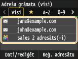 Lai varētu izmantot šo funkciju, adrešu grāmatā ir jāreģistrē adresāti.