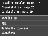 Noklikšķiniet, lai pārbaudītu, vai ir ievadīts pareizs ID un PIN kods. Šī funkcija nav pieejama, ja iekārta ir savienota ar datoru, izmantojot USB vai WSD (Web Services on Devices — ierīču tīmekļa pakalpojumi) portu.