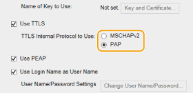 Atzīmējiet izvēles rūtiņu [Use TTLS] vai [Use PEAP].