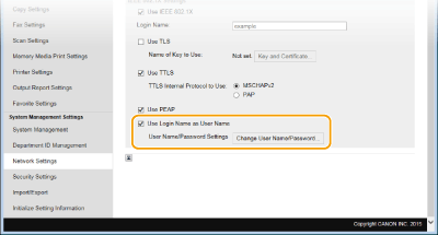 Lai norādītu lietotājvārdu, kas atšķiras no pieteikšanās vārda, notīriet izvēles rūtiņu [Use Login Name as User Name]. Atzīmējiet izvēles rūtiņu, ja vēlaties izmantot pieteikšanās vārdu kā lietotājvārdu.