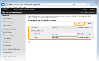 Iestatiet lietotājvārdu/paroli un noklikšķiniet uz [OK].