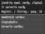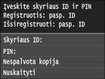 Bakstelėkite <Skyriaus ID> arba <Sistemos administratoriaus ID>.