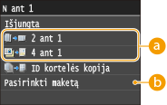 Naudojant <2 ant 1>/<4 ant 1> automatiškai sumažinamas kopijavimo mastelis (kopijavimo mastelis rodomas ekrane). Prieš paspausdami