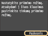 Norint priėmimo režimą nustatyti kaip <Faksas / telefonas (automatinis perjungimas)>