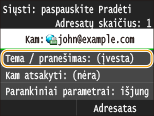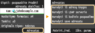 Adresų knygelės naudojimo instrukcijų žr. skyriuje Nurodymas iš adresų knygelės .
