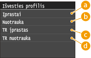 Kai <TR įprastas> arba <TR nuotrauka> pasirinkta <Išvesties profilis>