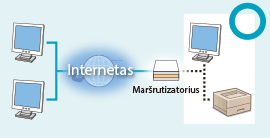 IP adresas – tai skaitmeninė žymė, priskirta kiekvienam kompiuterių tinkle esančiam įrenginiui. „Bendras IP adresas“ naudojamas ryšiui jungiantis prie interneto, o „privatus IP adresas“ – ryšiui vidiniame tinkle, pvz., bendrovės LAN. Jei priskirtas bendrasis IP adresas, jūsų spausdintuvas ar daugiafunkcis aparatas yra viešai prieinamas ir prie jo galima prisijungti per internetą. Tokiu būdu padidėja informacijos nuotėkio dėl neteisėtos prieigos iš išorinio tinklo pavojus. Kita vertus, jei priskiriamas privatus IP adresas, jūsų spausdintuvas ar daugiafunkcis aparatas yra ribojamas vietiniame tinkle ir prie jo gali jungtis tik jūsų vietinio tinklo, pvz., bendrovės LAN, naudotojai.